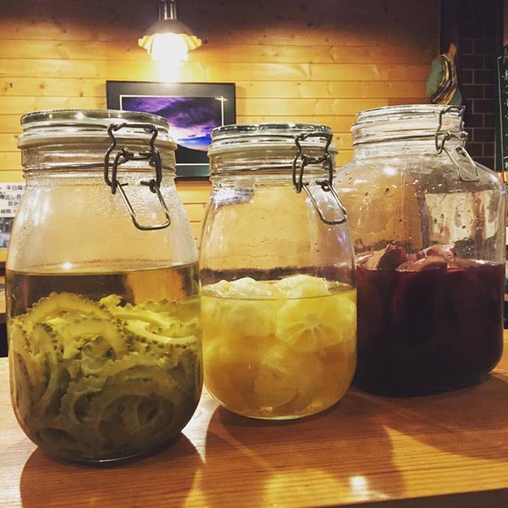 その他にも「ゆず×ウォッカ」や「ゴーヤ×焼酎」など自家製果実酒もご用意してます☆